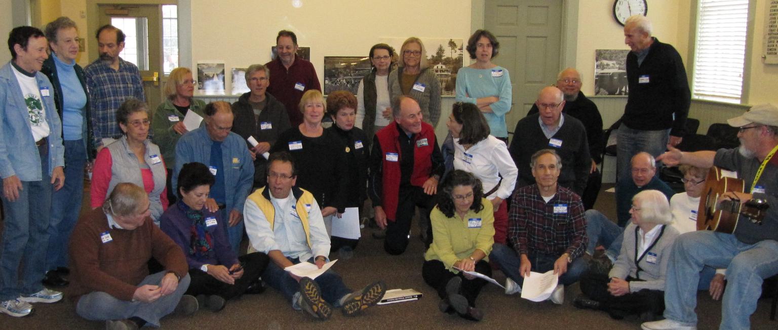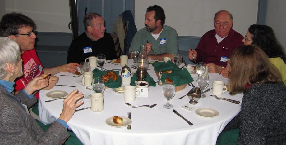 Tammy introduced Ditte Frederiksen McNeil (left photo below), Josh and Leah Lieberman's granddaughter, who grew up at the camp. Ditte spoke briefly. Sturbridge historian Bob Briere (middle below) spoke next, reading a letter from Simon Ottenberg, who attended the camp in its early years on Bailey's Island in Maine. Josh and Leah ran the camp there in the summers of 1929 - 1931. Filmmaker Bruce Butcher (right below) then spoke about his progress on the documentary. He is going through footage and starting on the script - there are many sides of the camp's story that could be told. He is enjoying interviewing so many interesting alumni and learning about how CRC has influenced their lives. He anticipates that the film will be at least an hour and he is considering the possibility of a longer film. ![]() Tom Greenfield then led the group in singing old camp songs, from a songbook he had earlier prepared and circulated by e-mail (click that link to see a copy, in Word format). ![]() After some practice run-throughs, the group was filmed singing, possibly for footage to be used at the close of the documentary. The singing was done before lunch, instead of later in the day as originally scheduled, because the predicted arrival of Hurrican Sandy the next day caused some of the participants to have to leave earlier than expected. ![]() The group then retired to the Publick House for lunch, including large quantities of their famous sticky buns. Here's my table: ![]() After the lunch, a group was led on a tour of the camp grounds. I did not participate, with expected guests arriving at my house later in the day (they were evacuating their home in Chatham prior to the hurricane). I thus have no photos of the walk. But Tammy Bliss subsequently wrote, "Conservation Commissioner Chairman Dave Barnicle joined Bob Briere and about a dozen CRC alumni on the walk. Bruce Butcher stayed at Town Hall to conduct three interviews that were originally scheduled for Monday, but were done on Sunday because of the Hurricane. Dan Weissman was on the walk with his video camera. A reporter from the local paper joined us for the entire walk." In fact, two reporters reported on the meeting, although perhaps only one went on the walk. Bob Briere has sent along copies of what they wrote. One article can be found on-line: Another article appeared in the Southbridge Evening News, October 30, 2012. We were given permission to post it on these pages courtesy of Stonebridge Press - click the link below for a scan of the article, with photos: While searching, I also found an older article on the film in the Sturbridge Villager of September 28, 2012 (click on the link to see it): Below is a picture of filmmaker Bruce Butcher interviewing Ditte Frederiksen McNeil. You can click on the photo to see more photos taken on the camp grounds during the interview process. ![]() The following sign was brought to the meeting, found on the camp grounds. It used to hang on the entrance road, near the office: ![]() Here's a list of the attendees, about 35, circulated before the event (let me know if I've omitted anyone). This is the list as I received it from Tammy, alphabetized by current last name, with some maiden names in parentheses: Former campers and spouses: Tammy (Guzik) Bliss